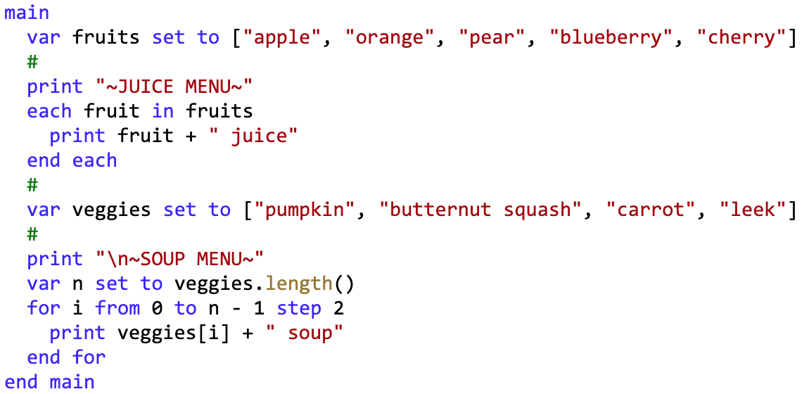 Here are some example Elan programs and PRIMM resources on arrays (lists), showing how straightforward it is to teach with Elan if switching from Python (for example).