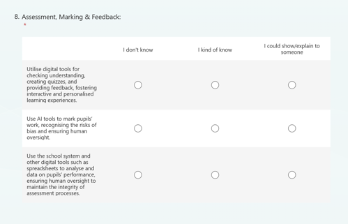 This resource includes a digital literacy checklist (as both a Google and Microsoft form) that you can copy and share with your colleagues so they can self-assess their digital skills and help you plan CPD for your staff.