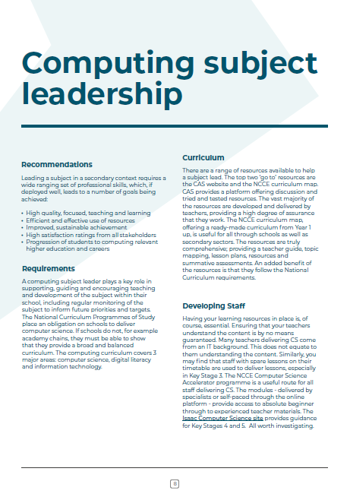 Our latest resource has brought together members of the CAS community to provide support for secondary computing leads to develop the subject in their school.